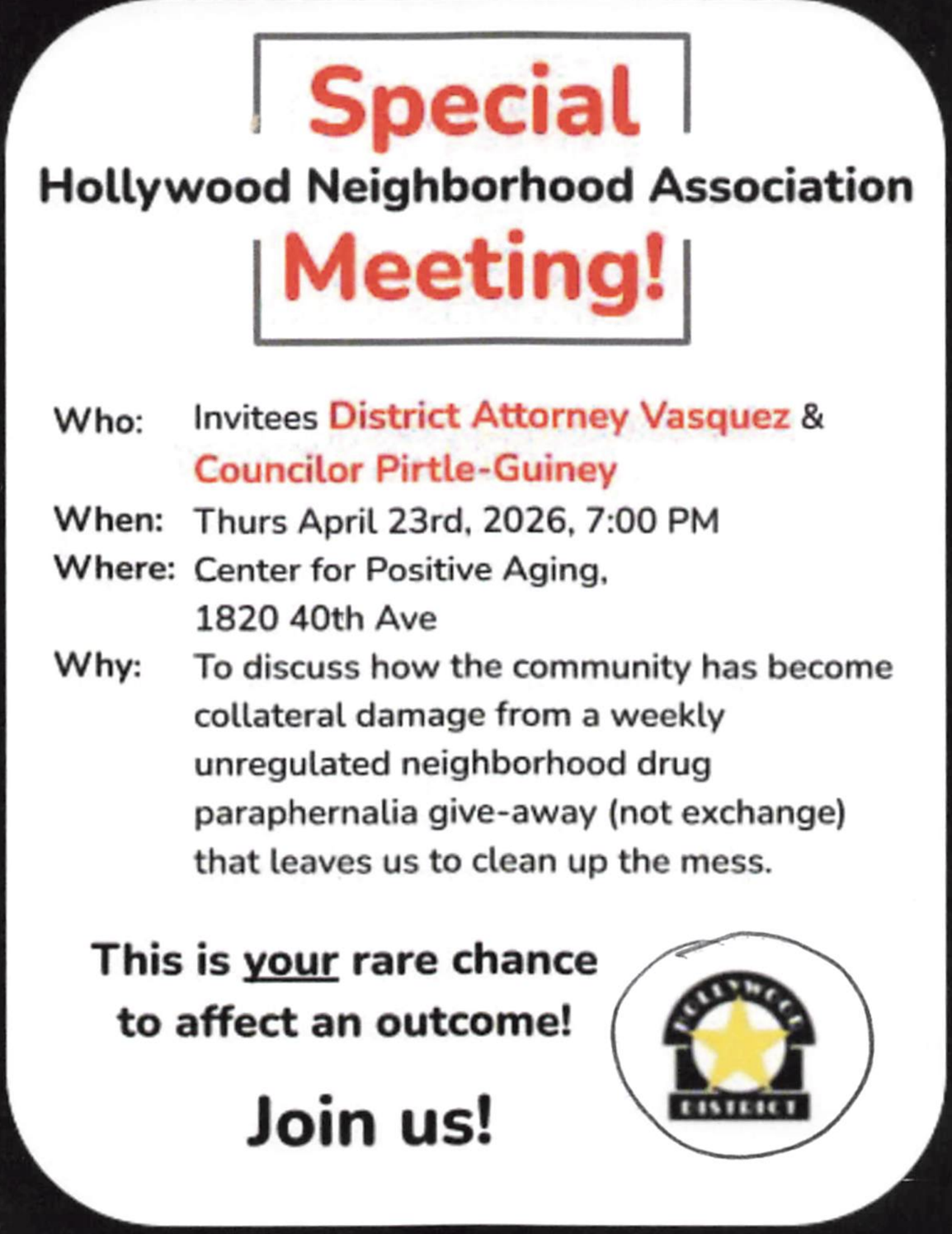 Special Hollywood Neighborhood Association Meeting Thursday, April 23, 2026 7:00 PM 9:00 PM Google Calendar ICS
